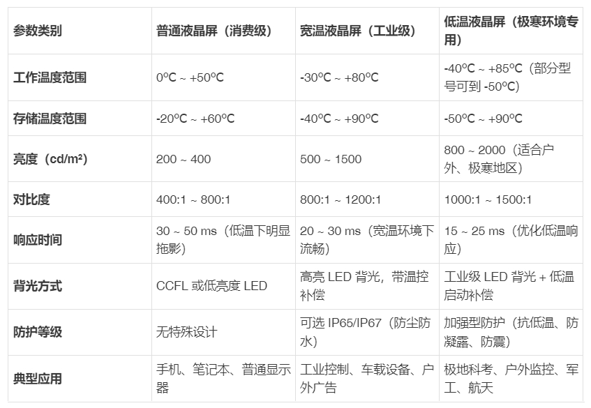 低溫液晶屏是一種專門設計用于在低溫環境下正常工作的顯示設備。普通