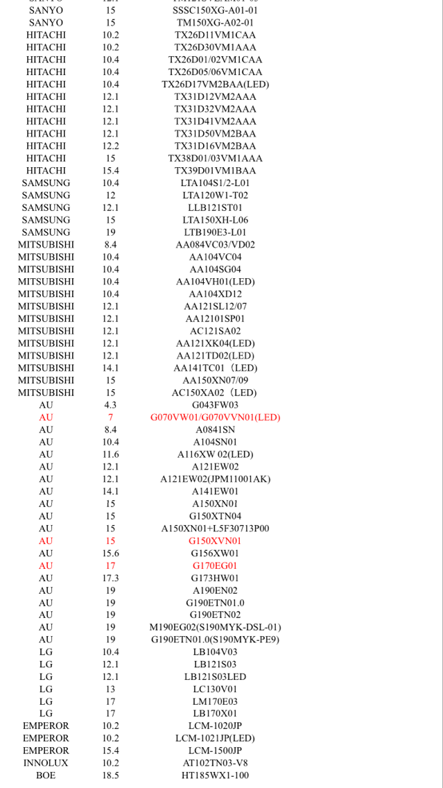 - G190ETT01.1 友達19寸 分辨率1280*1024